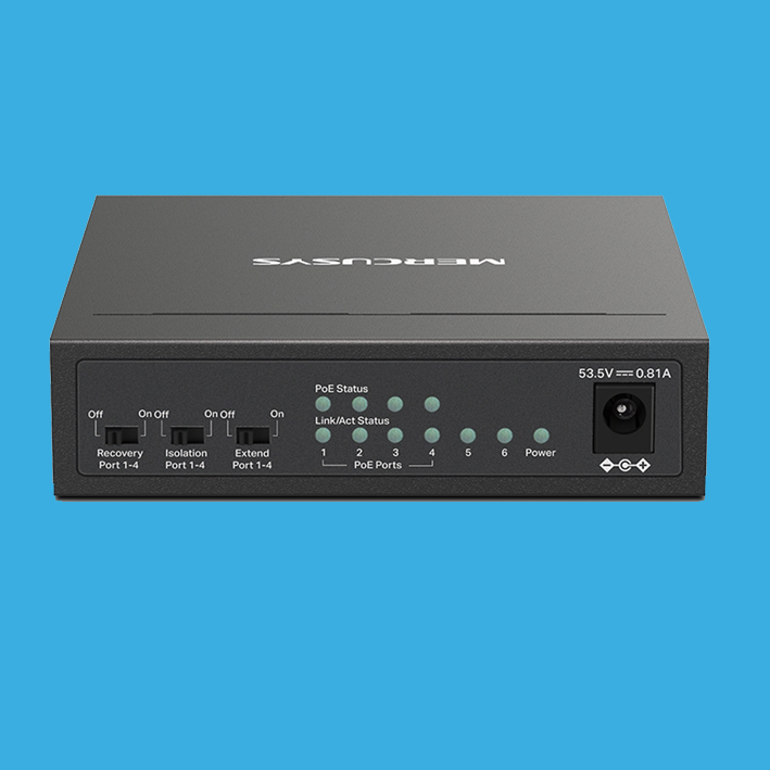 Коммутатор, Mercusys, MS106LP, Миниатюрный, 6 портов 10/100M RJ45 (4 порта PoE+ 802.3af/at 40W, 250м